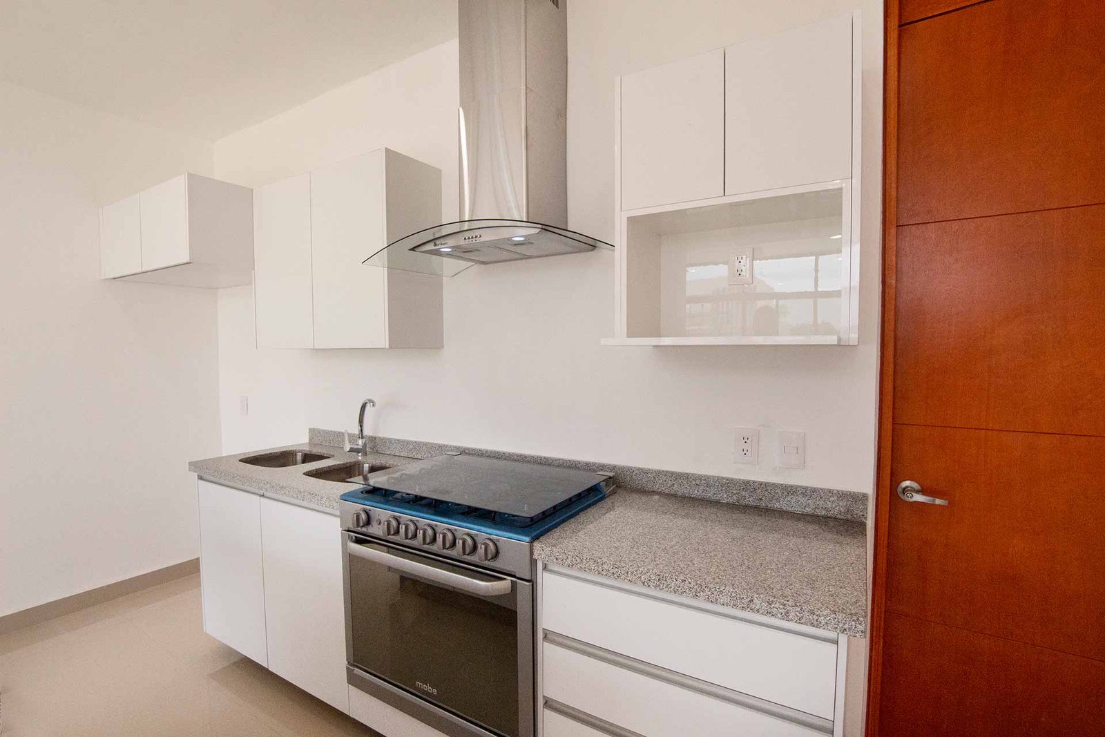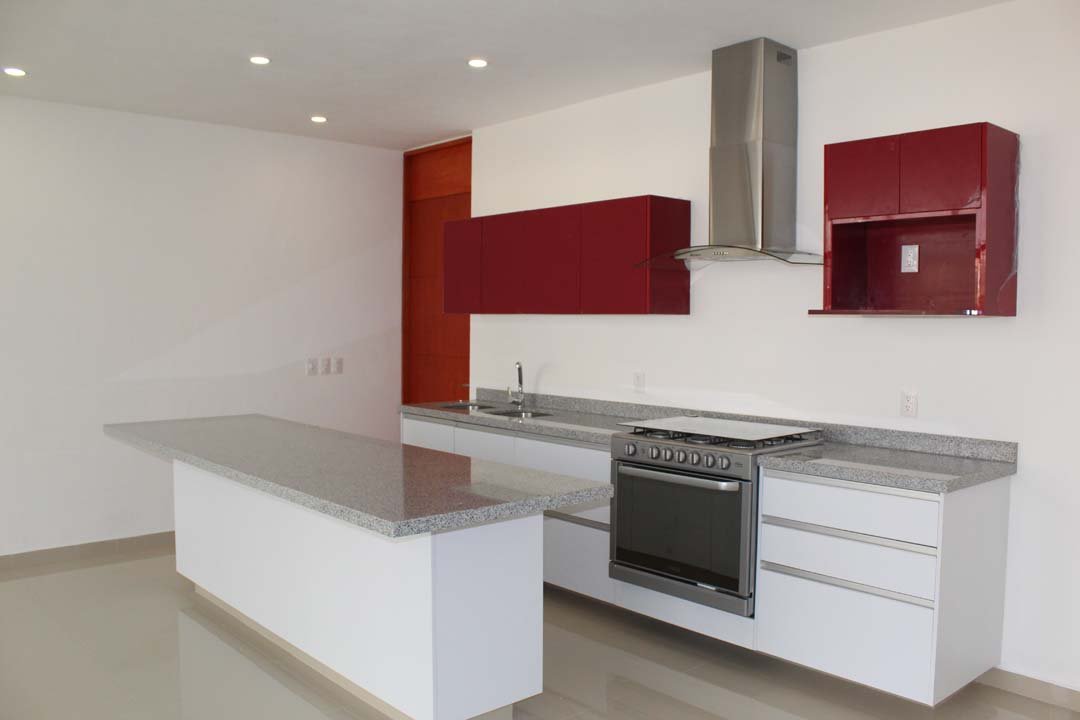 ![]() | Cocina integral con granito, campana, estufa con horno y 6 quemadores con cubierta de vidrio templado, tarja de doble tina y llave mezcladora tipo mono mando. |