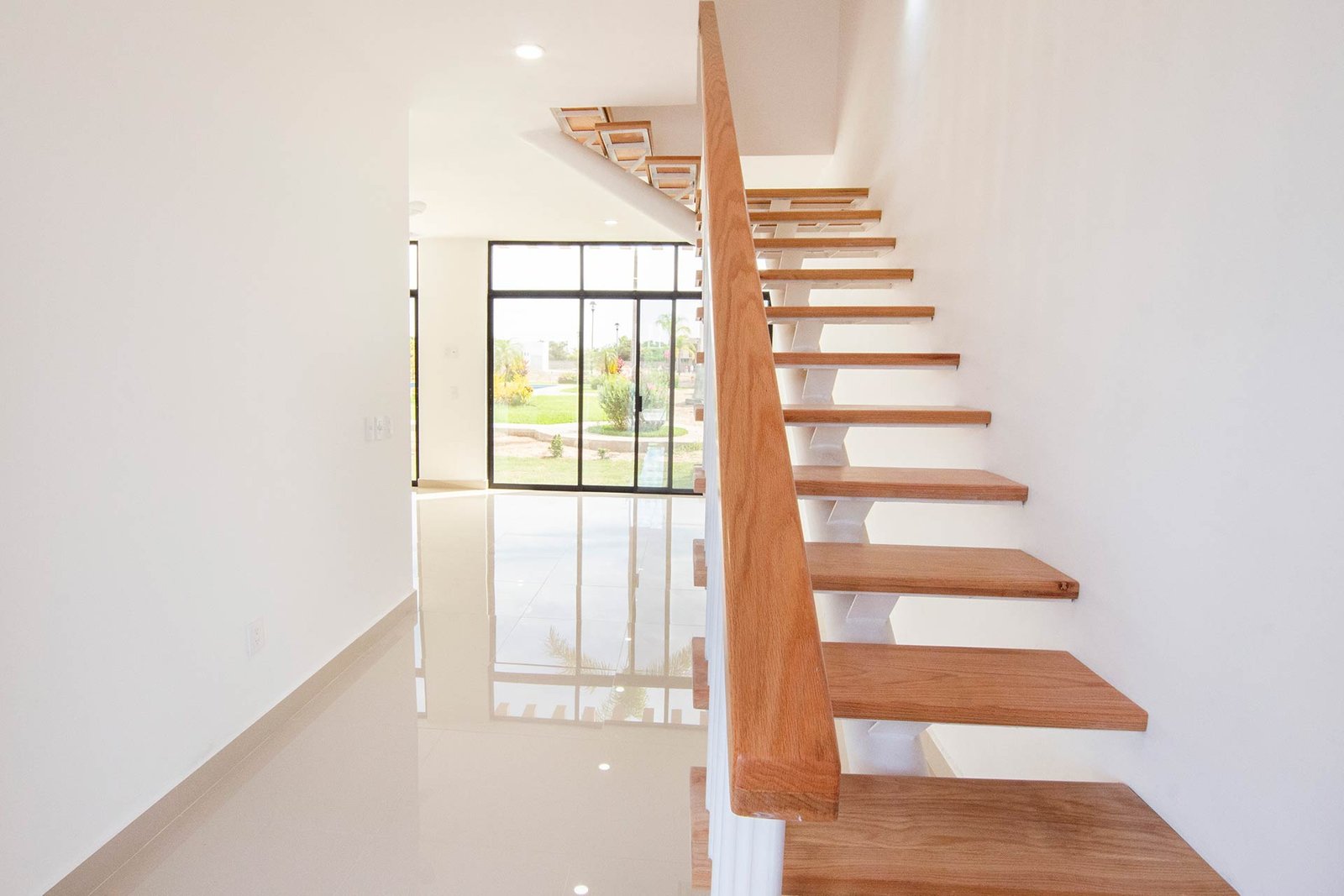 ![]() | Escalera con pasamanos y escalones de encino. |