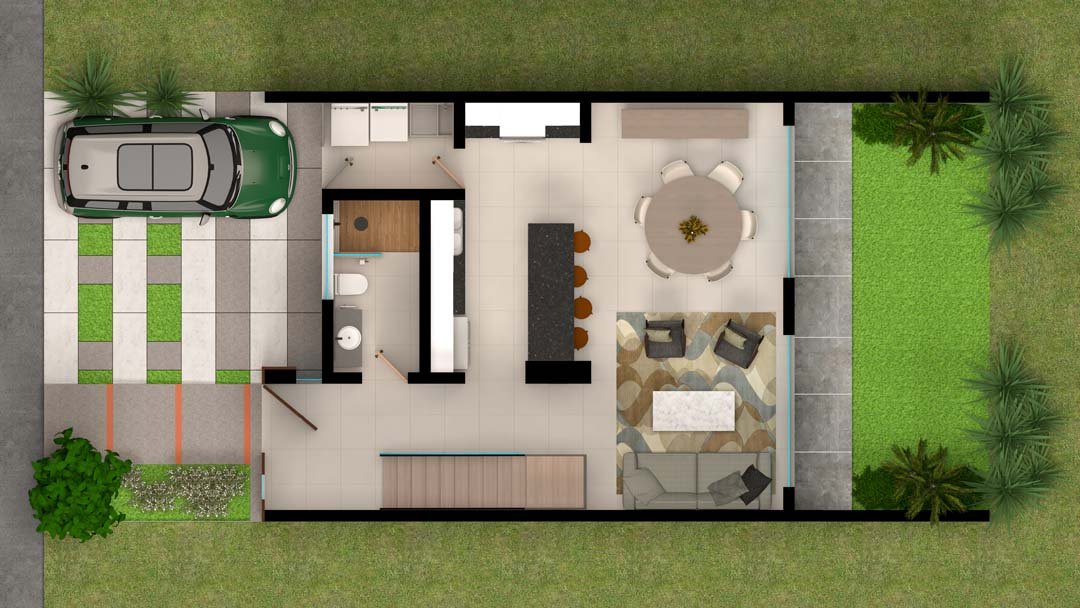 TERRENO: 123m2 (7.5m x 16.5m) – CONSTRUCCIÓN: 150m2